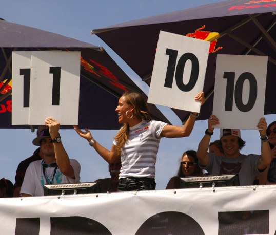 The competition wasn’t on speed alone. There was a panel of celebrity judges up on an elevated platform. Here are three of them (left to right): Josh Henderson (from Dallas, star of Dallas), Lolo Jones (Olympic hurdler), and Louie Vito (X-Games Snowboarder).