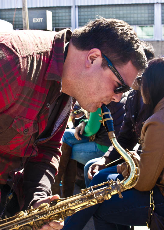 Saxophone player with The Gold Magnolias at a concert at the Freret Market – New Orleans