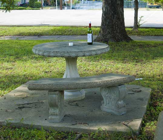 The only thing that was there was a wine bottle sticking up on one of the tables. I assumed someone had been there before me – probably the night before – and used the spot for a little public intoxication. Not liking litter – I went over to fetch the bottle so I could find a trash can somewhere.