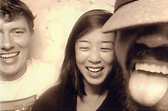 “Back there, by the bathroom, there’s a photo booth. One of those old fashioned ones. The ones that take a strip of four pictures.”