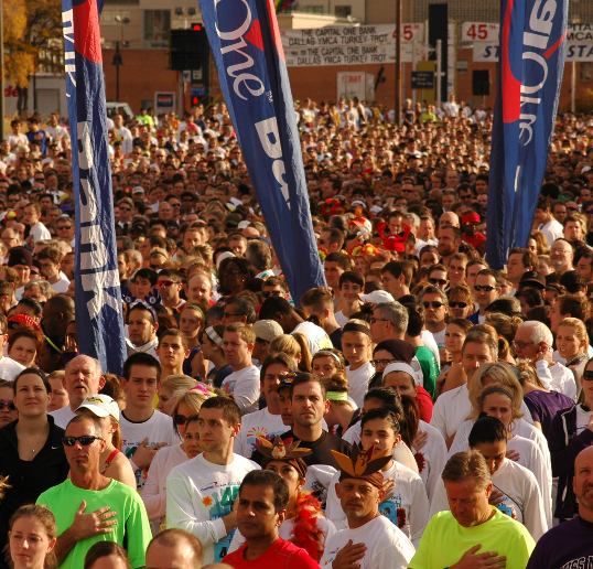 Everybody said it seemed a little less crowded this year. I think the thick fog had something to do with that. They announced thirty eight thousand runners (including 616 dressed as turkeys) with another 15 thousand spectators (the folks that had to drive and carry all the crap).