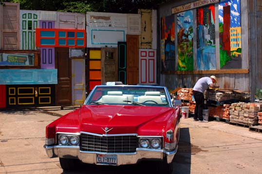 Using vintage products as art and architecture. The exterior of Orr-Reed Wrecking.